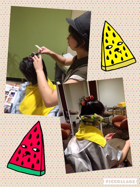 尾内さん堀さん藤田さんが頑張ってパーマを巻いてました!