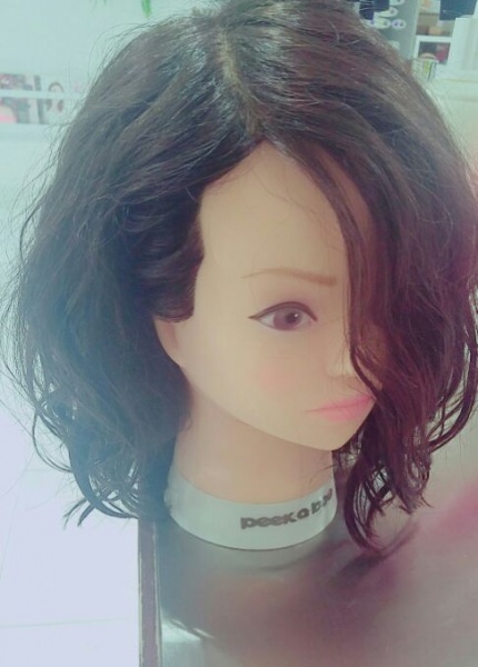 パーマをかけたウィッグをセットしてみました^ - ^