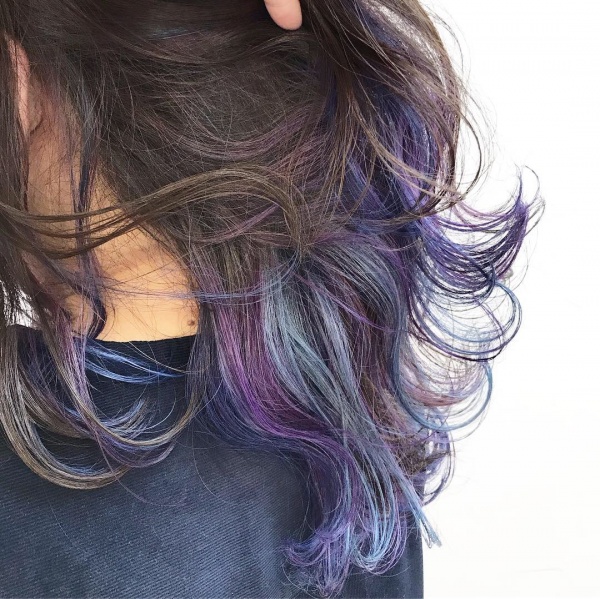 ブリーチ2回してある状態で、Blue & purpleを重ねてオンカラー!!
