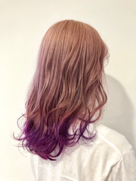 ブリーチしたベースに、パープルアッシュと毛先には鮮やかなパープルでグラデーションカラーにしました♪
