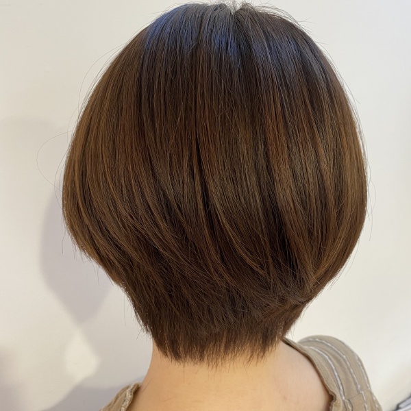 いつもは結べるくらいの長さにしますが、最近涼しくなってきたので、短く 前下がりのグラボブにしました!